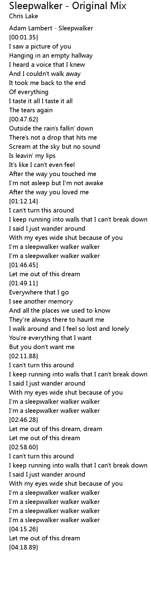 [00:00.63] Adam Lambert - Sleepwalker