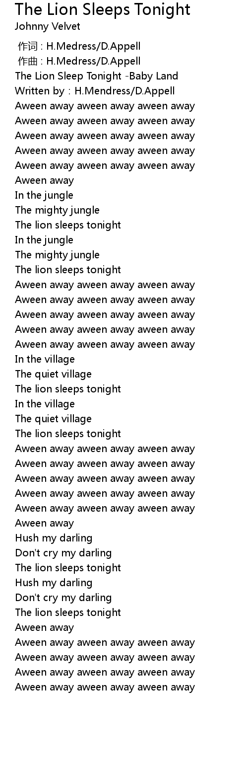 | [00:00.217] | The Lion Sleep Tonight -Baby Land |
