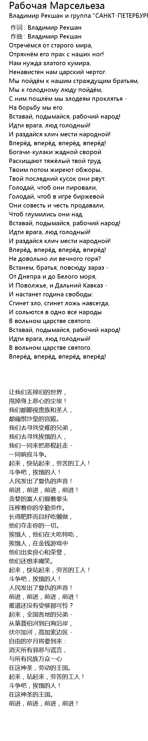 Вставай, подымайся, рабочий народ! |