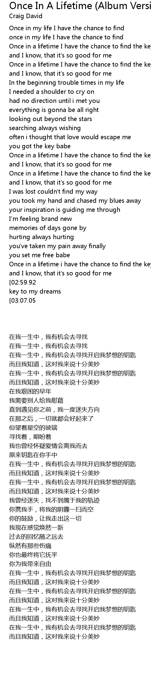 once in my life I have the chance to find |