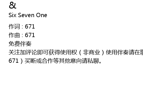 | 免费伴奏 关注加评论即可获得使用权(非商业)使用伴奏请在歌名后标注(prod.by 671)买断或合作等其他意向请私聊。 |
