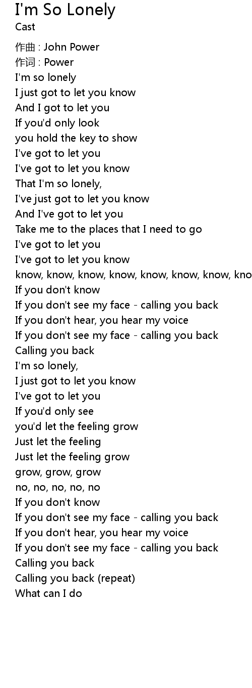 | That I'm so lonely, | |