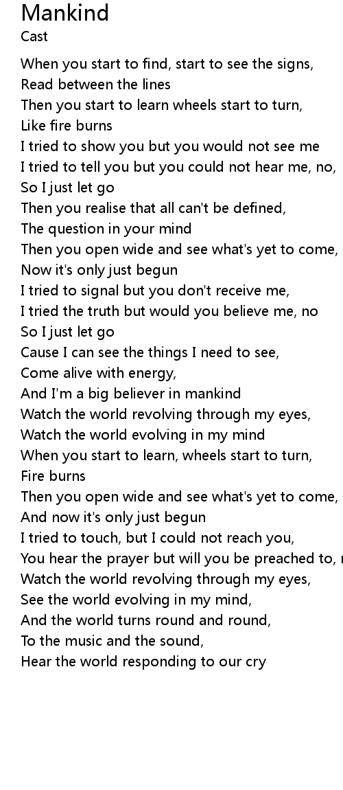 And I'm a big believer in mankind |