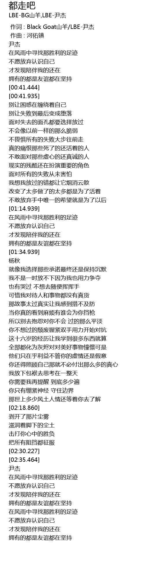 | [00:00.000] | 作词 : Black Goat山羊/LBE-尹杰 |