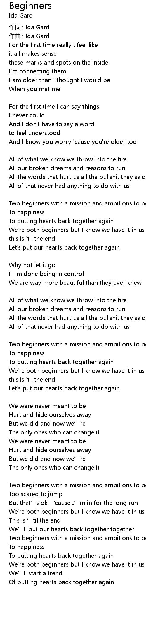 | We' re both beginners but I know we have it in us | |