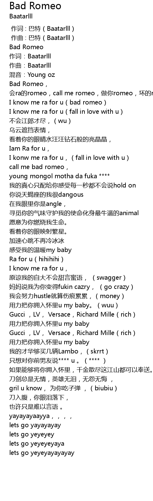 | [00:15.596] | I know me ra for u bad romeo |