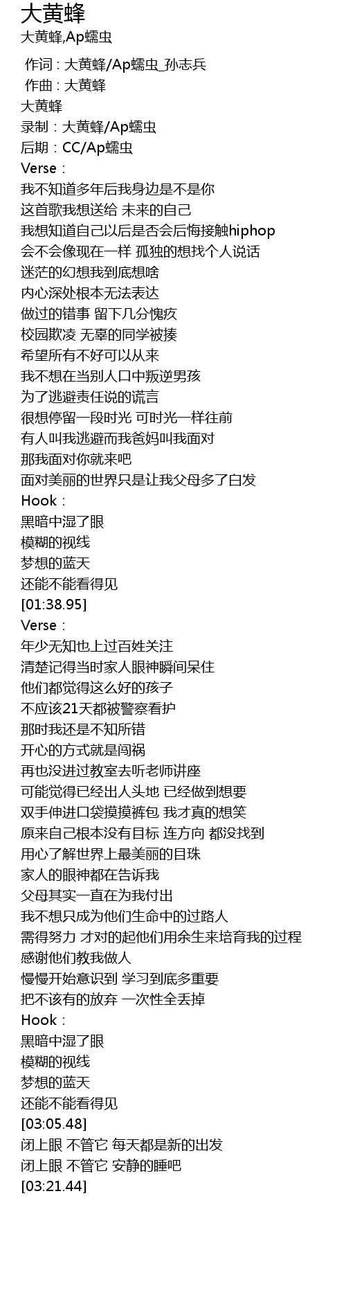| [00:01.000] | 作曲 : 大黄蜂 |