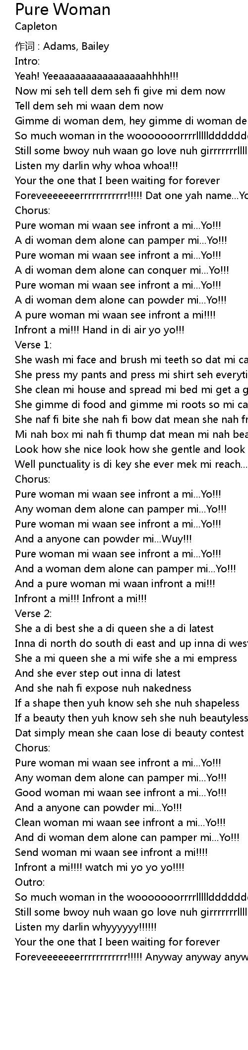 | Pure woman mi waan see infront a mi... Yo!!! | |