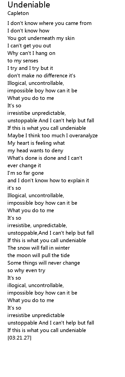 | [00:55.66] | unstoppable And I can′t help but fall |
