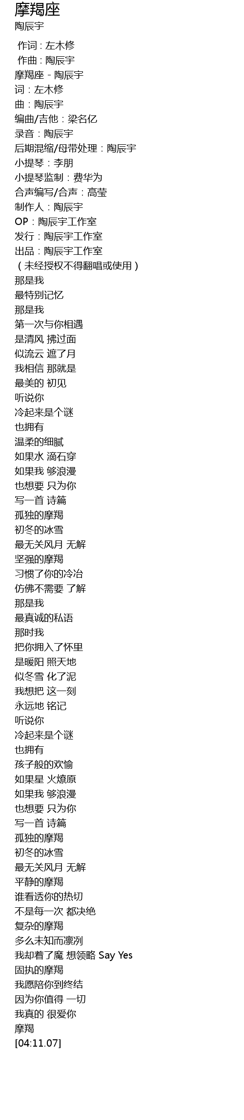 | [00:01.58] | 摩羯座 - 陶辰宇 |