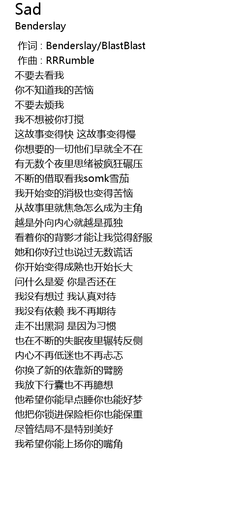 | [00:00.000] | 作词 : Benderslay/BlastBlast |