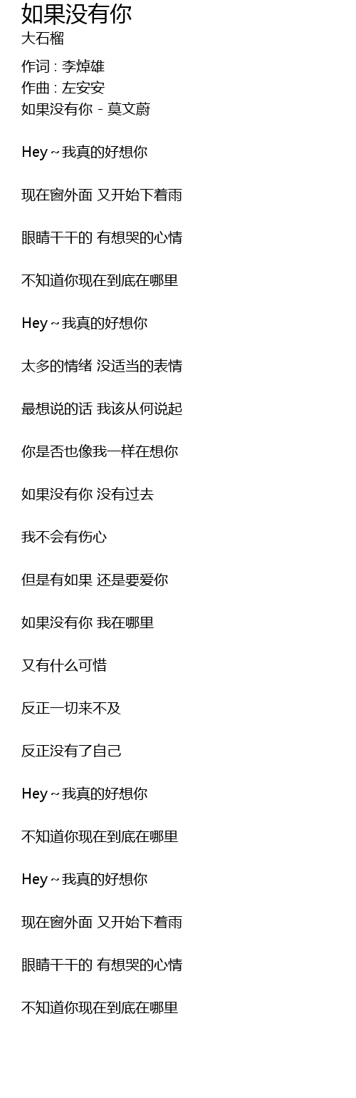 | rú guǒ méi yǒu nǐ mò wén wèi | |