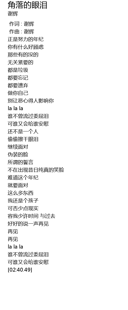 | [02:22.65] | 谁不曾流过委屈泪 |