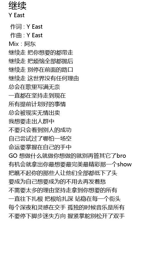 | [00:14.159] | jì xù zǒu bié tíng zài qián miàn dí lù kǒu |