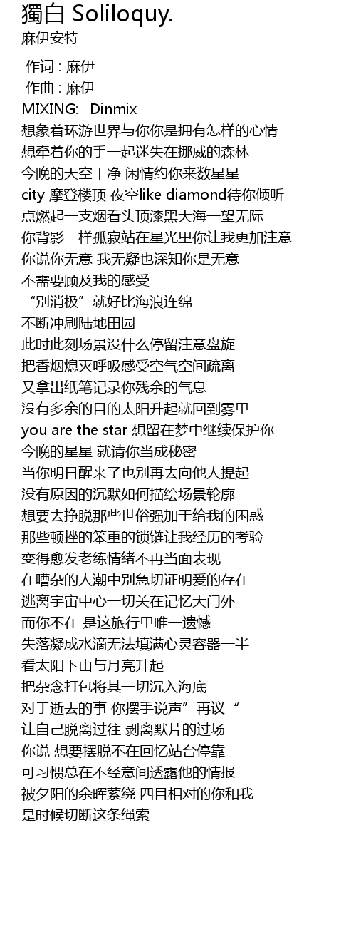 | [00:36.85] | 你背影一样孤寂站在星光里你让我更加注意 |