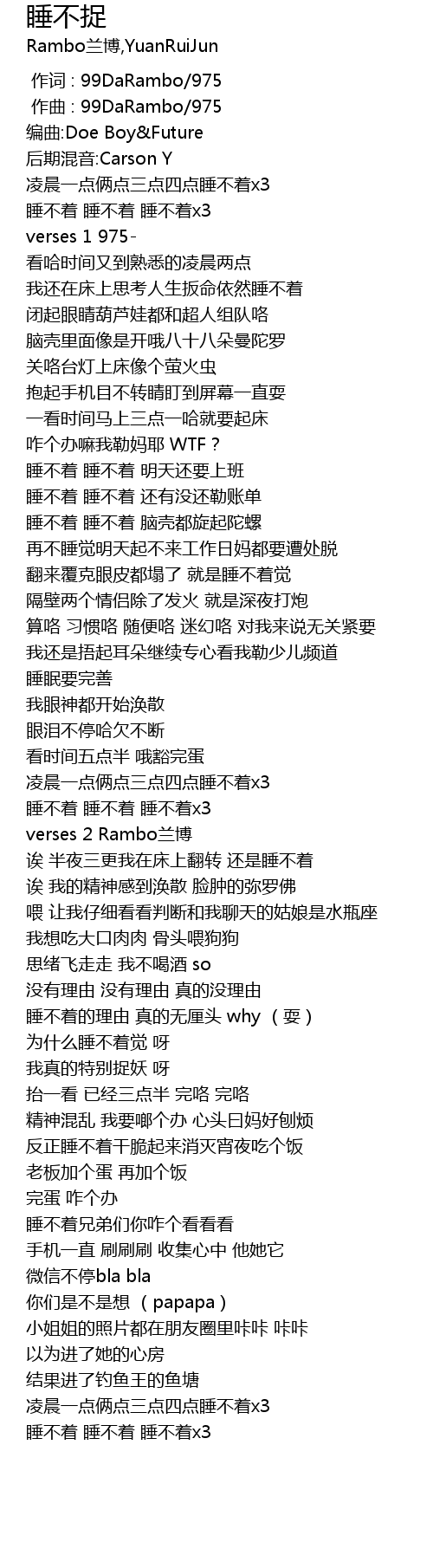 | [01:38.211] | shuì bù zháo shuì bù zháo shuì bù zháo x3 |
