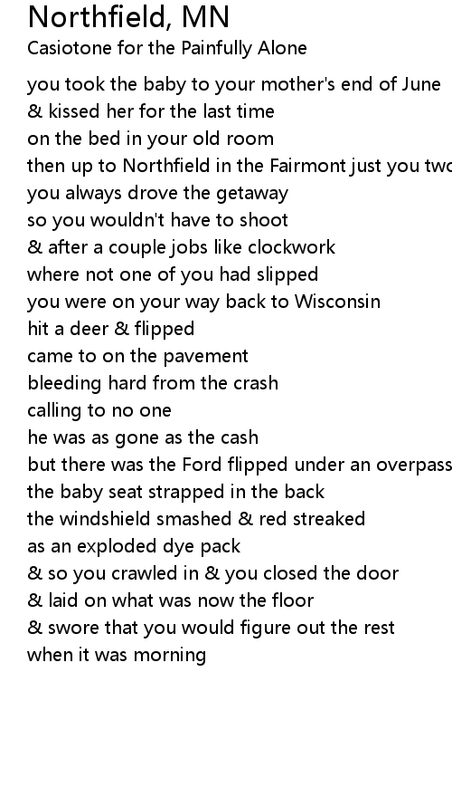 then up to Northfield in the Fairmont just you two |