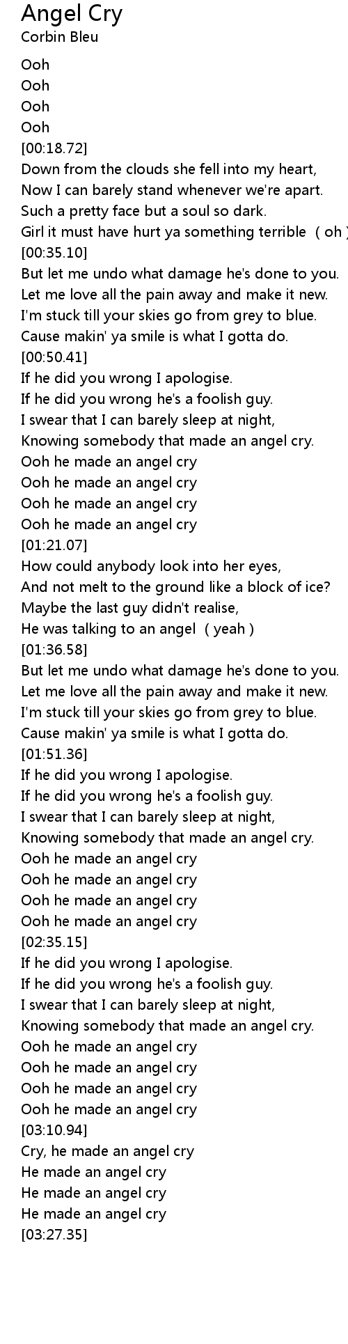 | [02:03.27] | Knowing somebody that made an angel cry. |