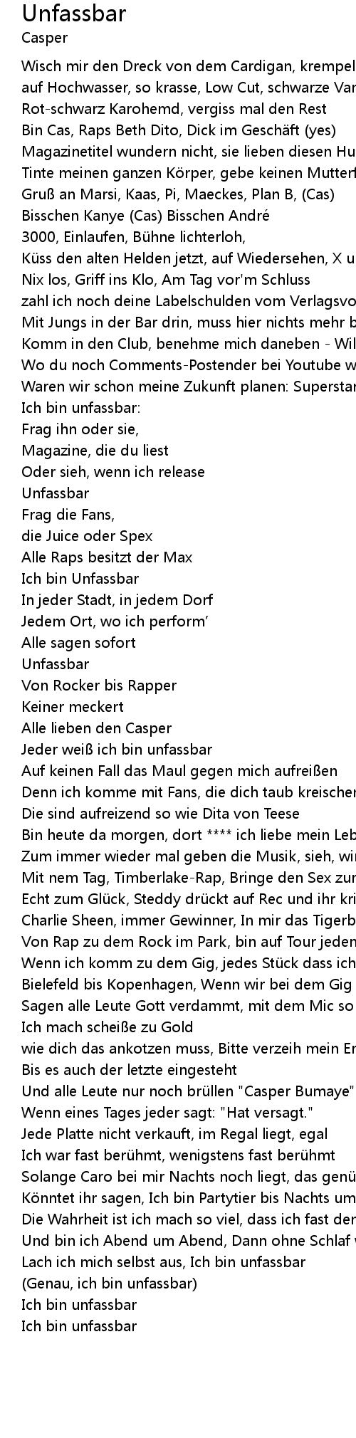 | (Genau, ich bin unfassbar) | |