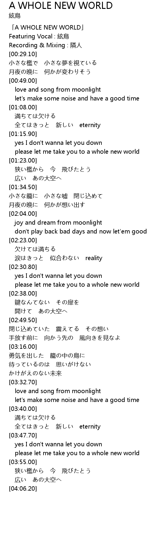 | [00:00.10] | 「A WHOLE NEW WORLD」 |