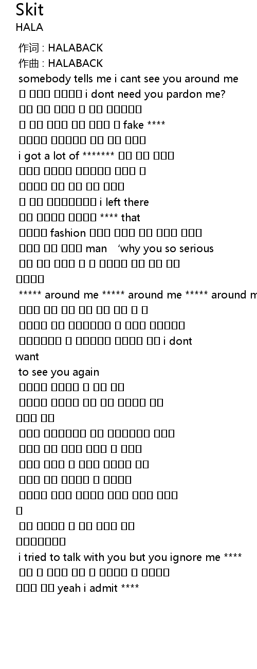 | [00:40.389] | ***** around me ***** around me ***** around me man |