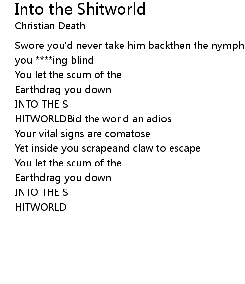 | Swore you'd never take him backthen the nymphomaniacin you changed her mindare you ****ing blind | |