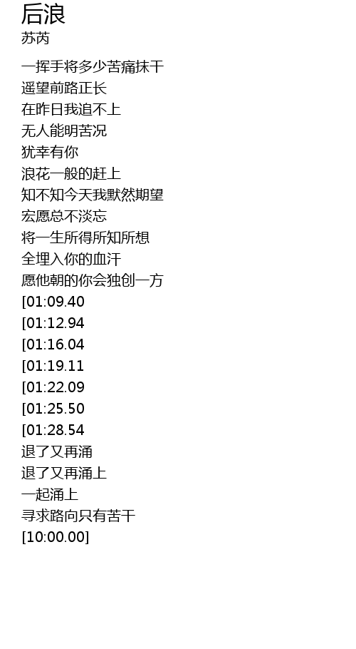 | [01:50.79][01:25.50] | hái wǒ hòu làng chéng jì hòu làng |