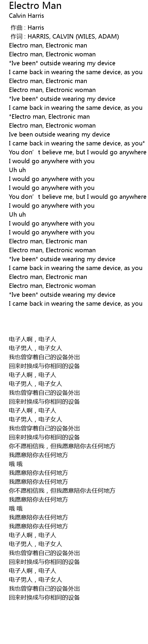 | [00:00.352] | 作词 : HARRIS, CALVIN (WILES, ADAM) |