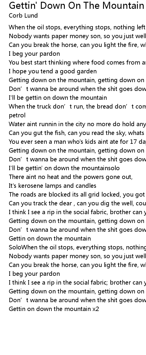 | Getting down on the mountain, getting down on the mountain | |