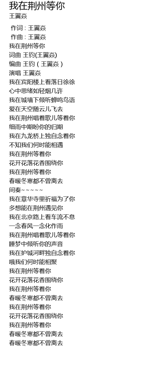 | [02:24.68] | 我在荆州唱着歌儿等着你 |