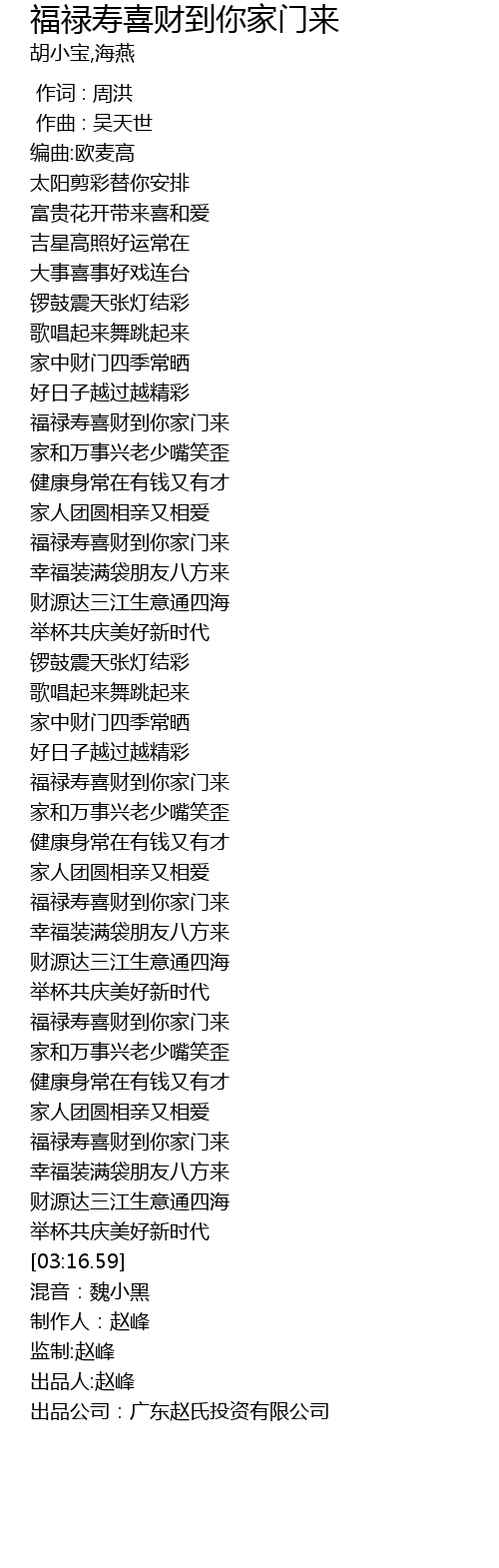 | [02:59.07] | 福禄寿喜财到你家门来 |