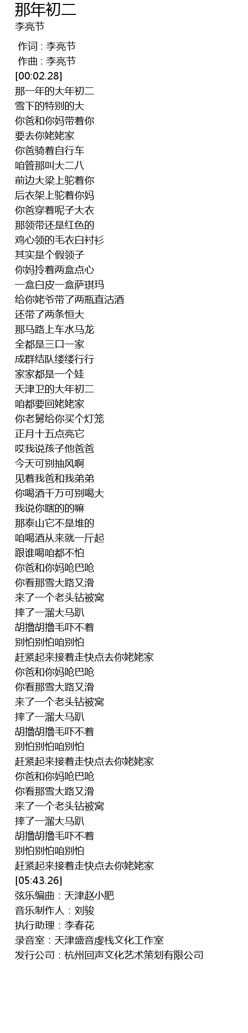 | [03:00.14] | tiān jīn wèi de dà nián chū èr |