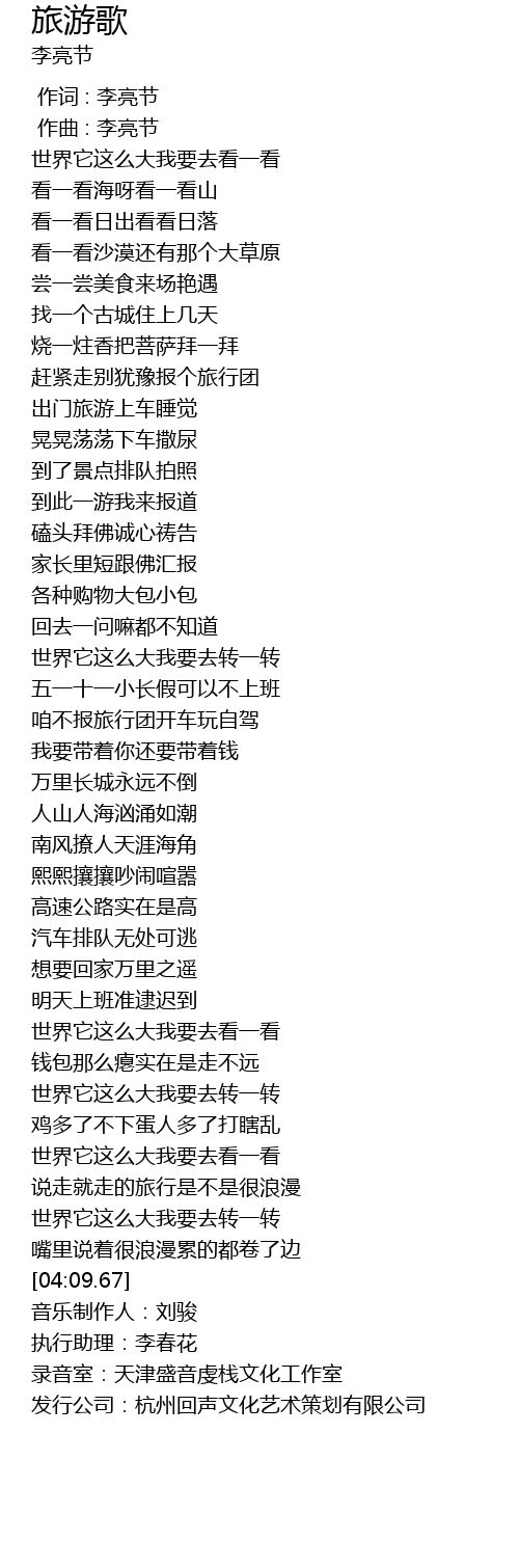 | [00:57.32] | 赶紧走别犹豫报个旅行团 |