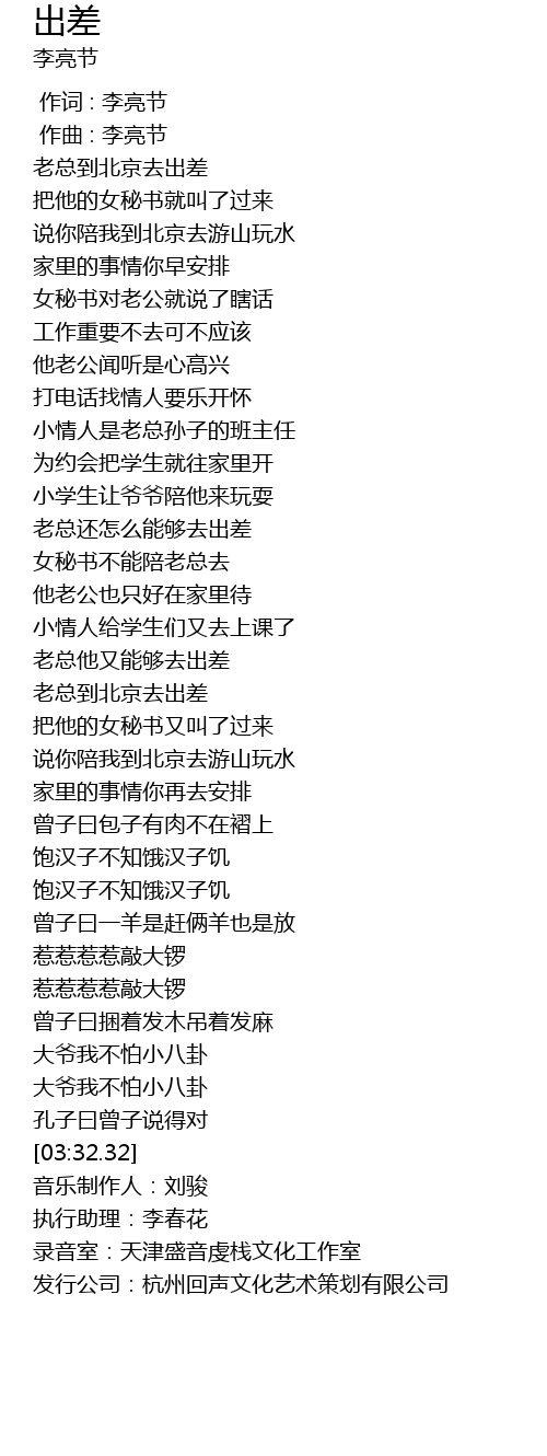 | [03:36.32] | 发行公司:杭州回声文化艺术策划有限公司 |