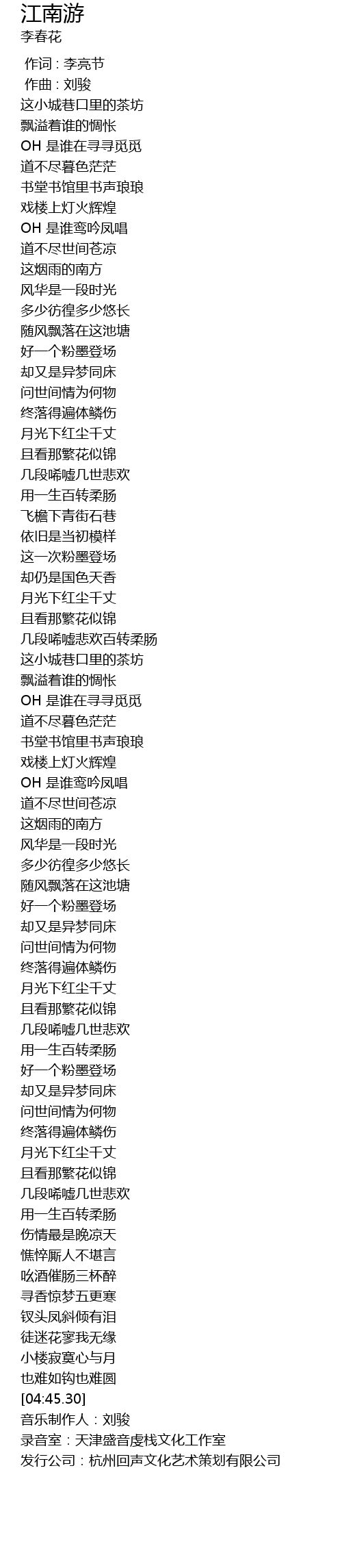 | [04:46.30] | yīn yuè zhì zuò rén: liú jùn |