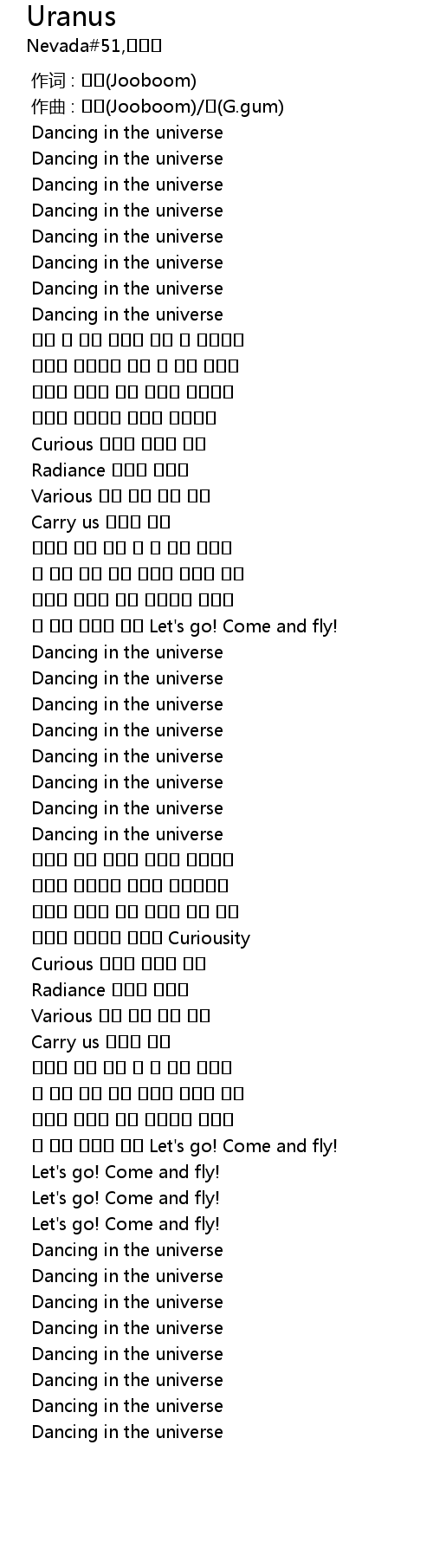 | [02:25.346] | 더 멋진 우주를 향해 Let's go! Come and fly! |