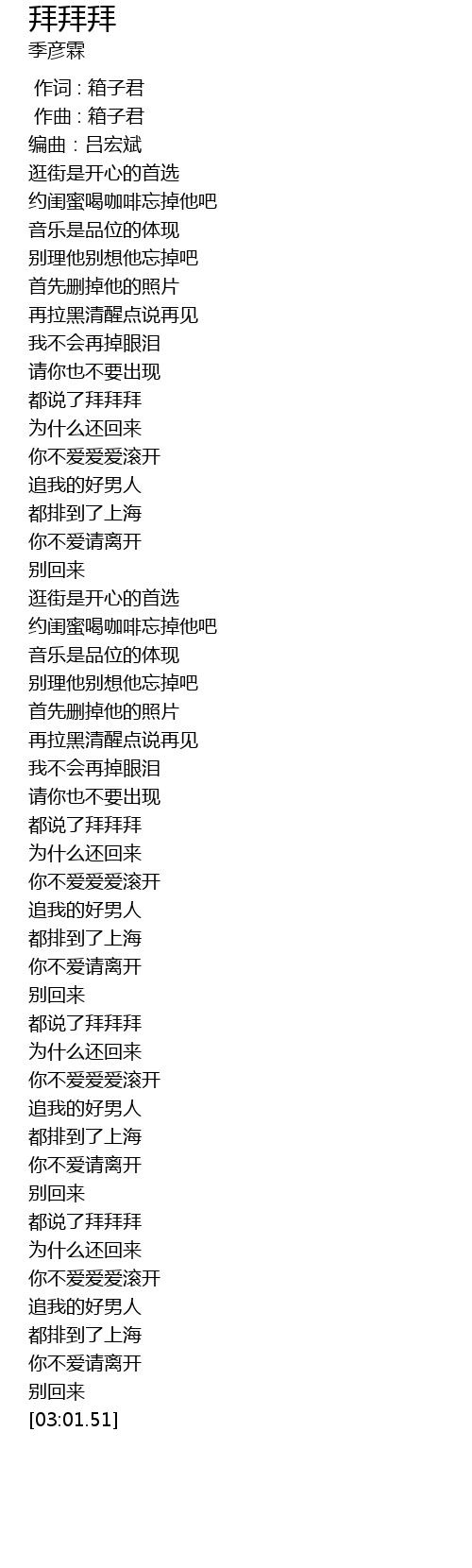 | [00:40.57] | 再拉黑清醒点说再见 |
