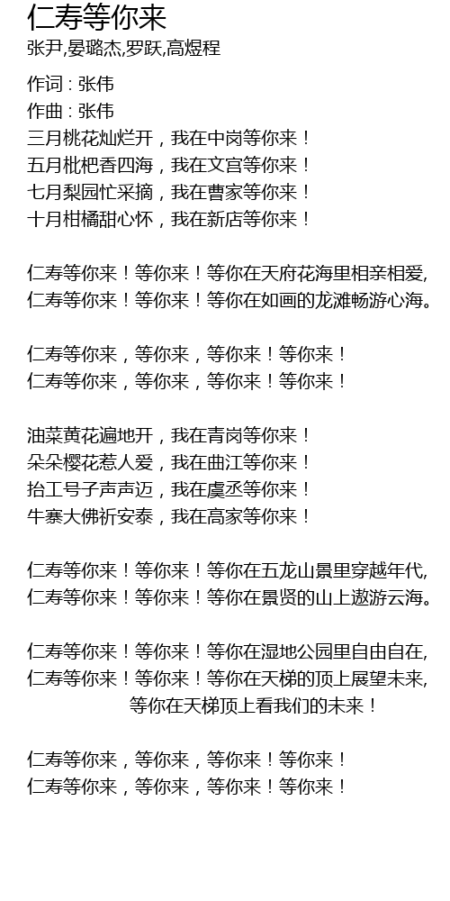 | 仁寿等你来,等你来,等你来!等你来! | |