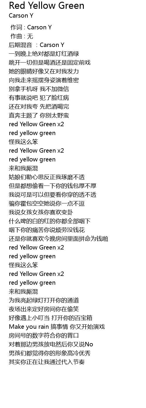 | [00:05.763] | hòu qī hùn yīn : Carson Y |