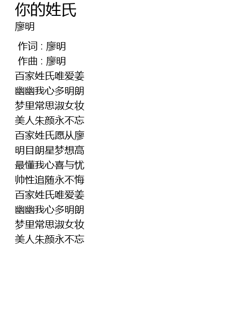 | [01:34.126] | 百家姓氏唯爱姜 |