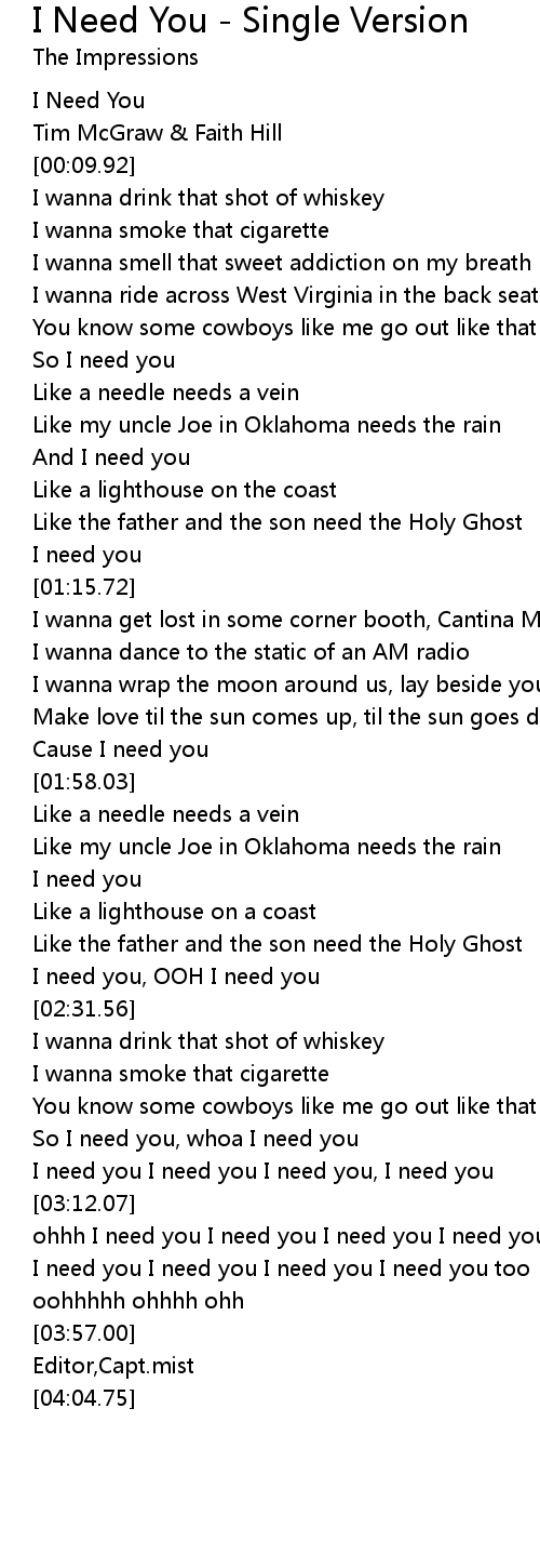 [03:04.13] I need you I need you I need you, I need you