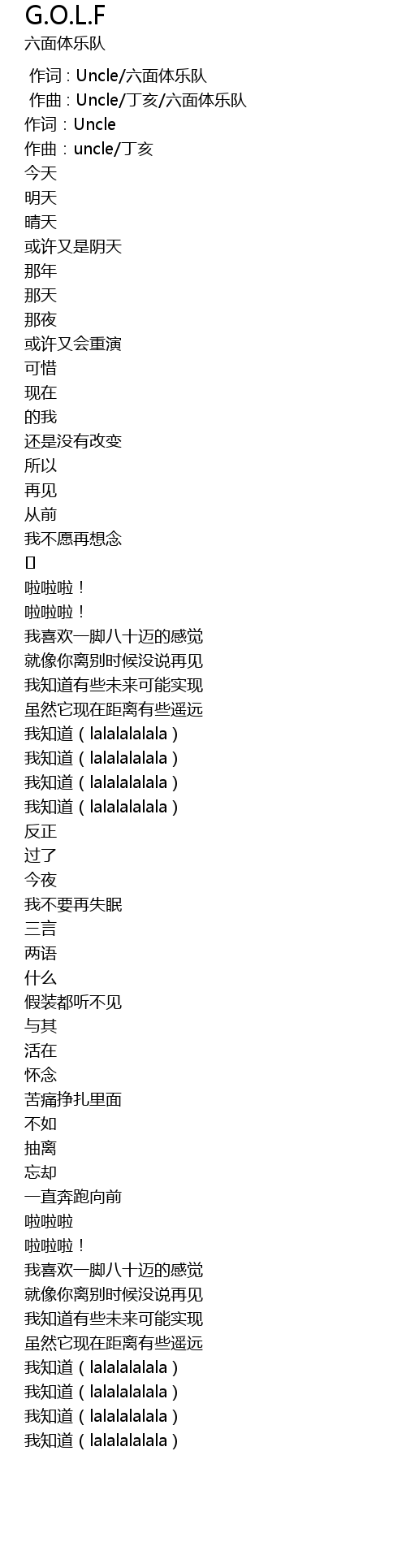 | [00:00.000] | 作词 : Uncle/六面体乐队 |