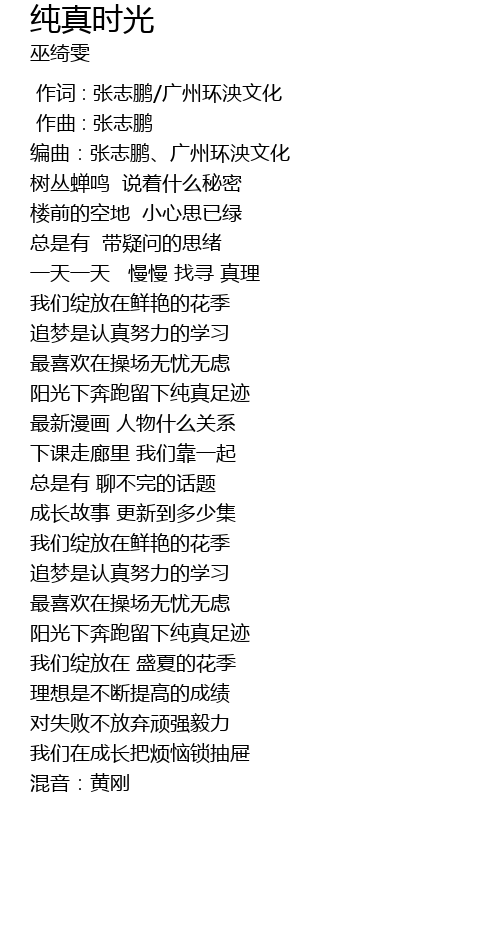 | [00:04.55] | 编曲:张志鹏、广州环泱文化 |