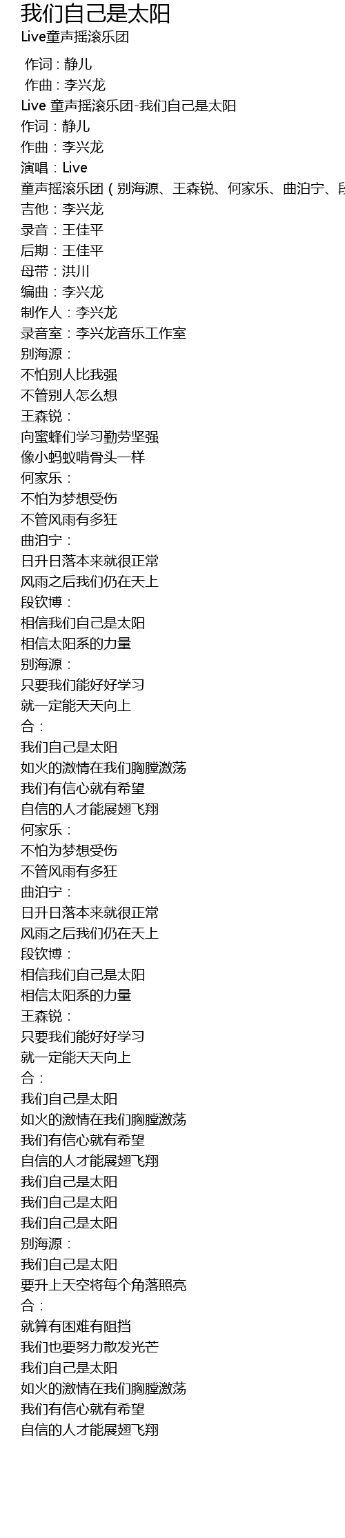 | [00:00.558] | Live 童声摇滚乐团-我们自己是太阳 |