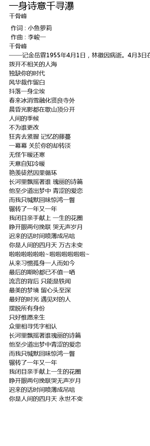 | [01:38.76] | 你是人间的四月天 万古未变 |