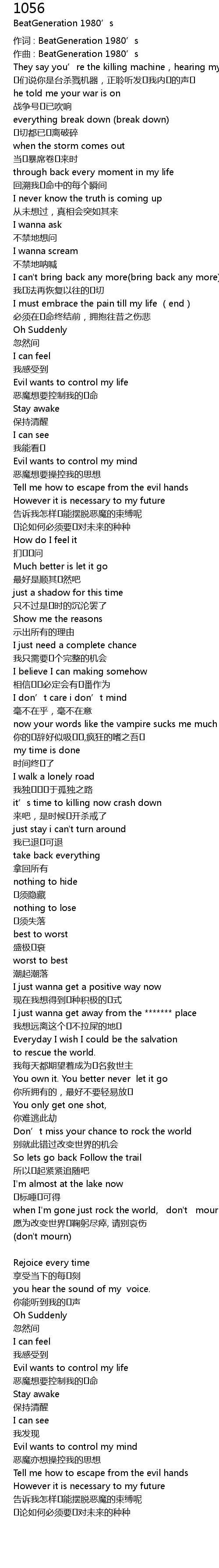 | 作词 : BeatGeneration 1980’s | |