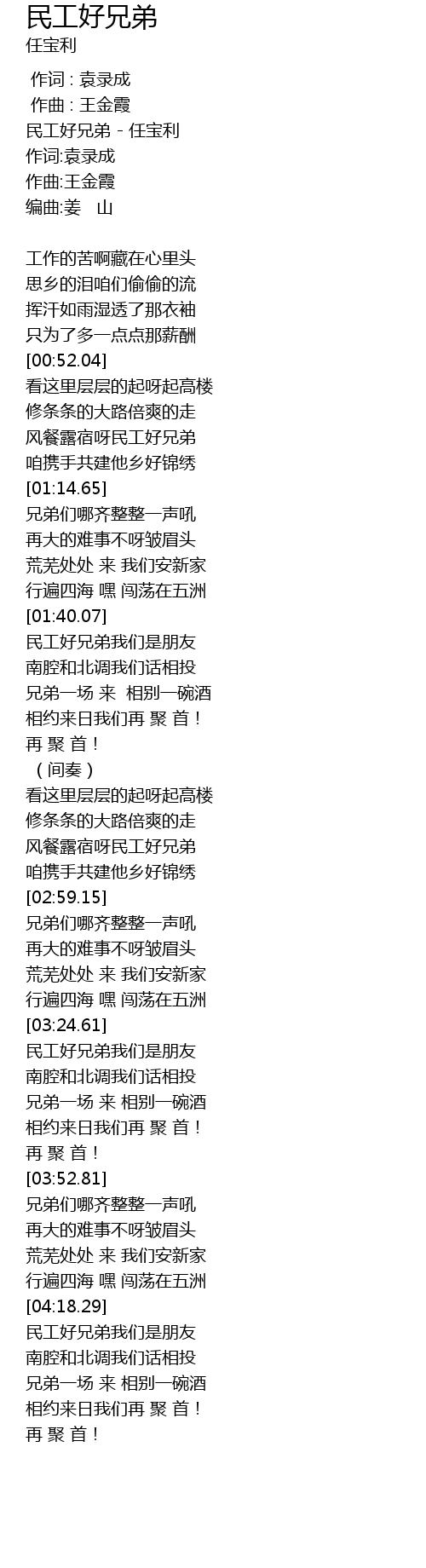 | [04:18.54] | 民工好兄弟我们是朋友 |