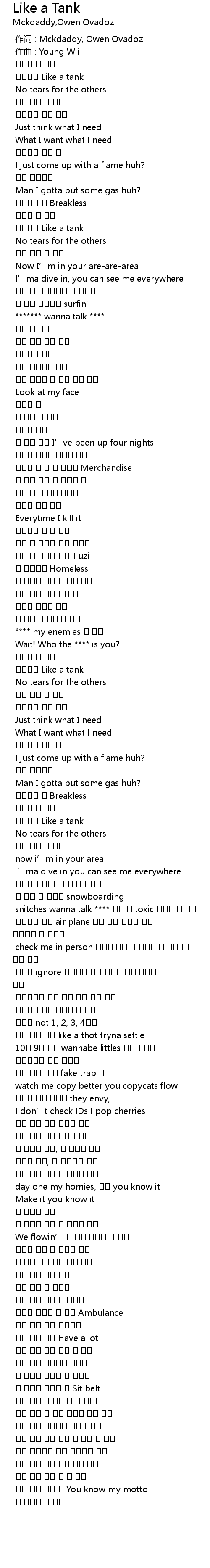 | [00:00.000] | 作词 : Mckdaddy, Owen Ovadoz |