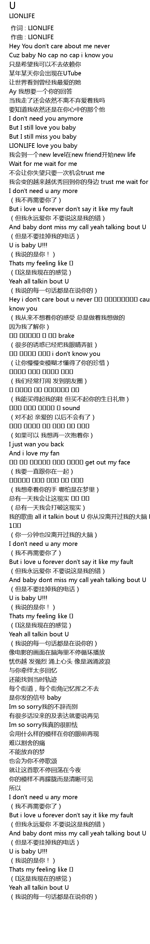 | [02:59.858] | But i love u forever don't say it like my fault |