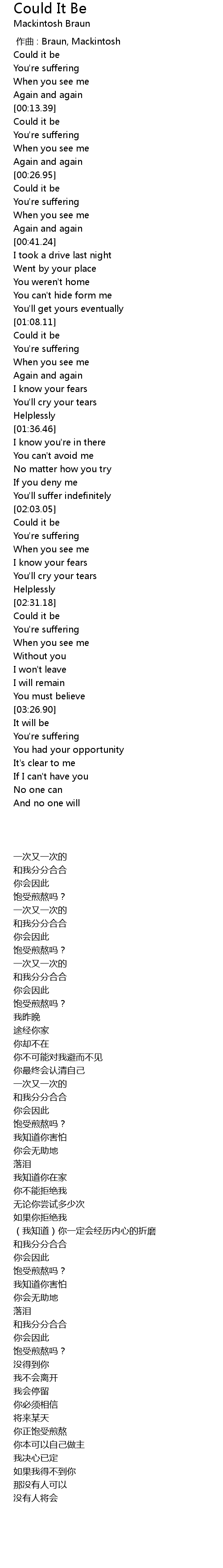 | [00:00.00] | zuo qu : Braun, Mackintosh |